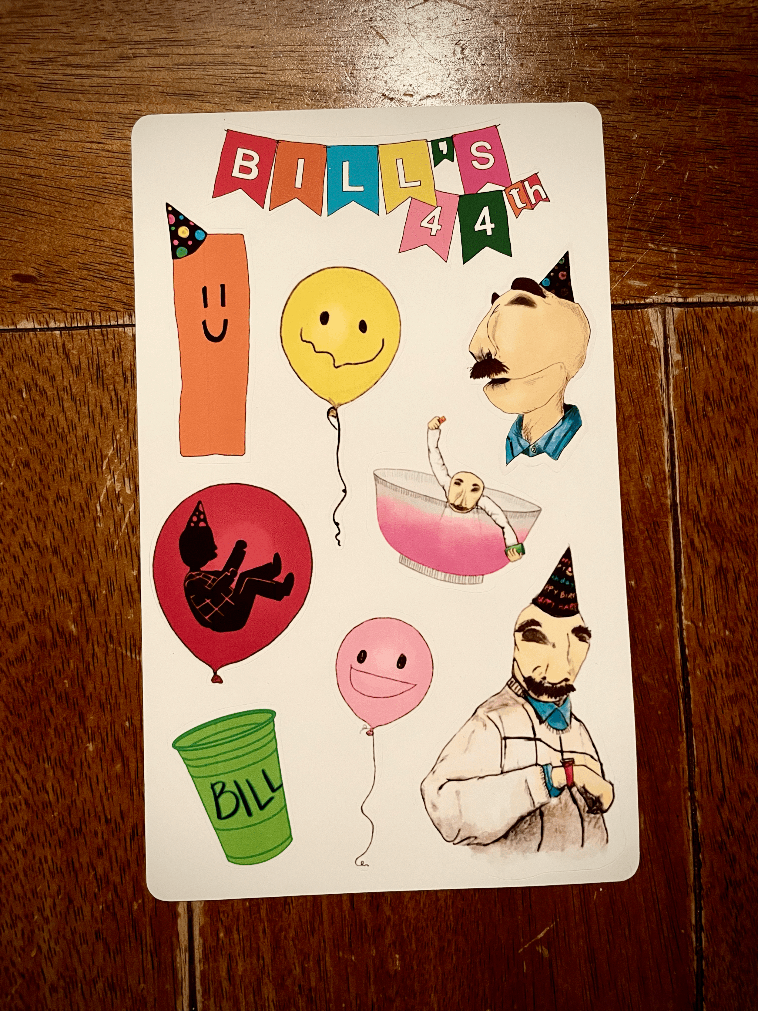 BILL IS WAITING - T-SHIRT BALLOONS AND BILL - T-SHIRT Cary Crewneck Sweatshirt Cary Pin Balloon - Pin Bill's Cup - Pin Pins x 3 Bill's 44th Sticker Sheet